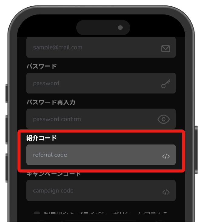 ALPHAオリパの紹介コードは、会員登録のタイミングで入力します