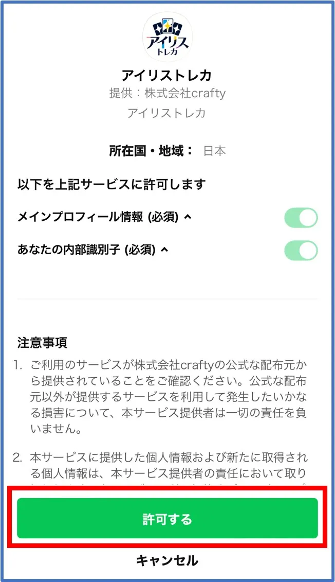 バナーをタップすると、認証画面に切り替わります。画面下の「許可する」をタップしましょう。