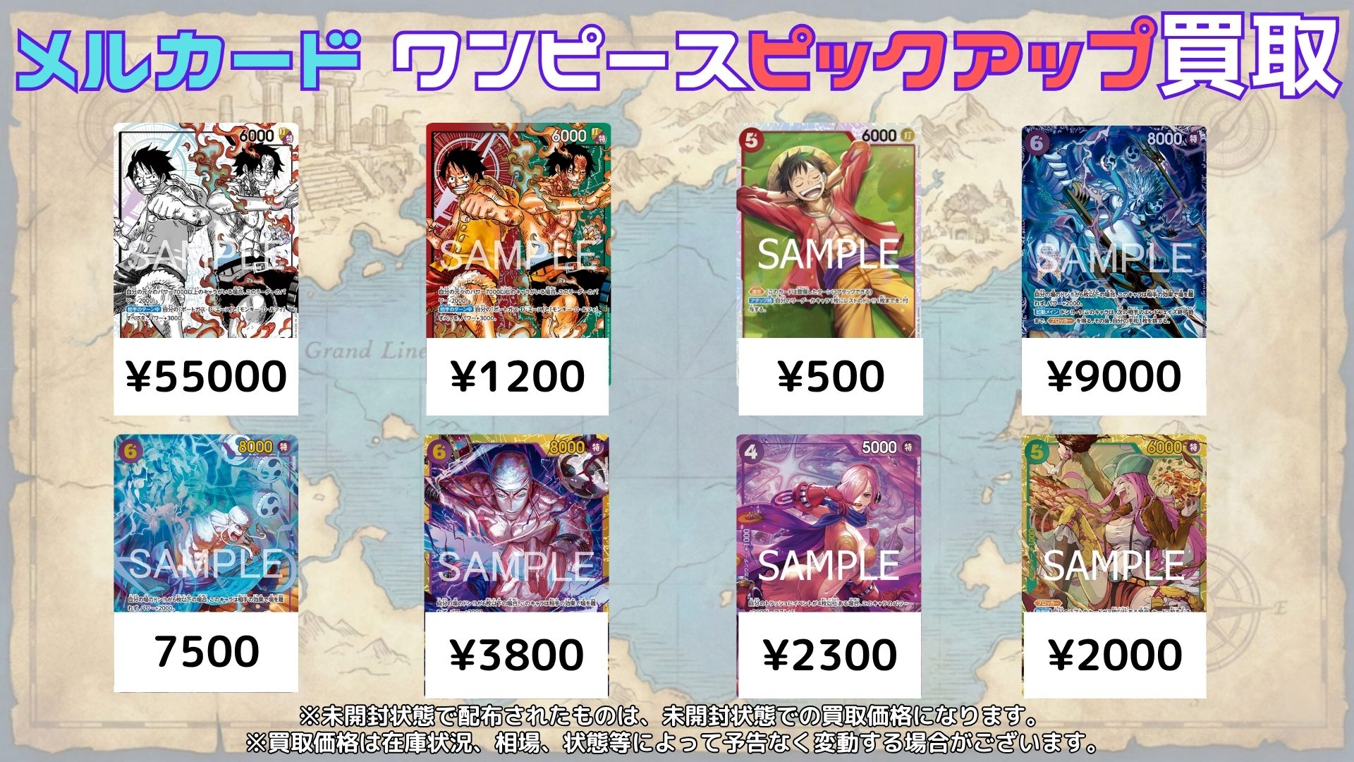 ・最新の買取情報は、メルカードワンピースカード買取サイトをご参照下さい。