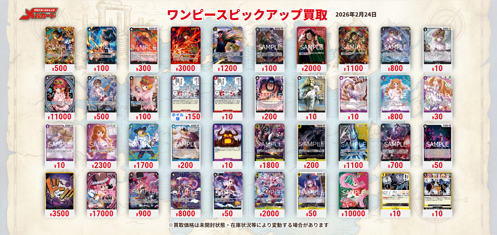 ・最新の買取情報は、メルカードワンピースカード買取サイトをご参照下さい。